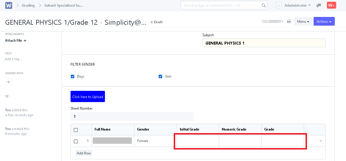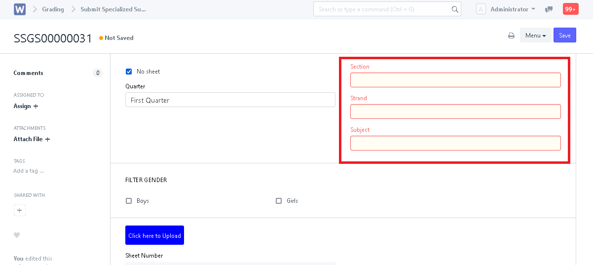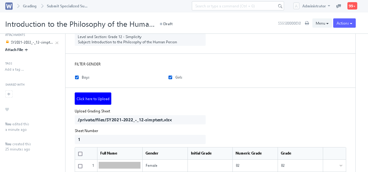 Step 3. Click the "Click here to Upload" button to upload an accomplished grading sheet for the chosen quarter or click "Final Grade Only (No sheet)" to be able to manually input the grades of each student in the system.